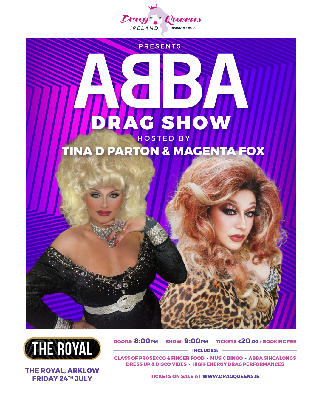 Get ready to unleash your inner Dancing Queen as the ABBA Drag Show takes over The Royal, Arklow for one unforgettable night of music, glamour and pure feel-good energy.