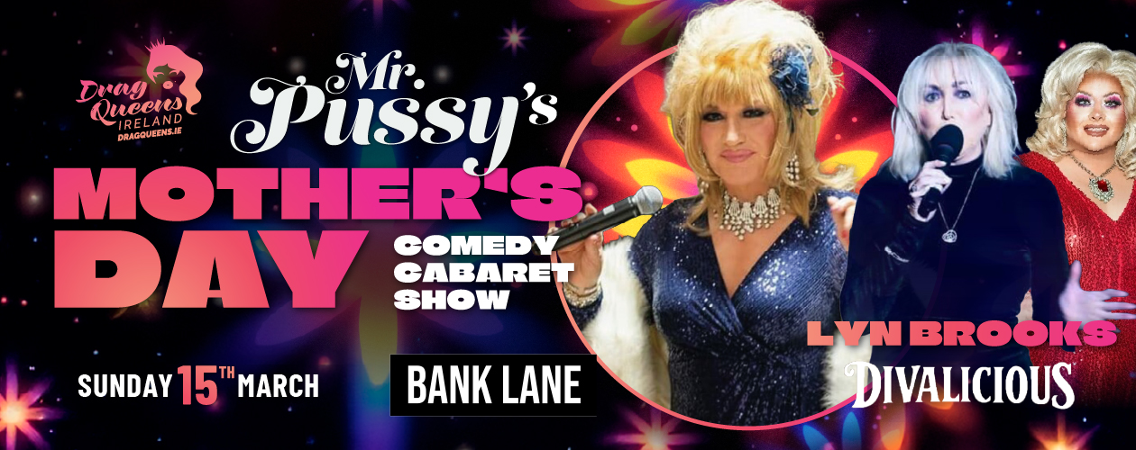 Join Dublin drag sensation Mr Pussy for a high-energy cabaret packed with sharp comedy, cheeky humour, and plenty of heart — the perfect treat for mums, grannies, aunties, and anyone who loves a great night out. Whether you’re celebrating together or gifting a night of entertainment, this show promises something truly special.
