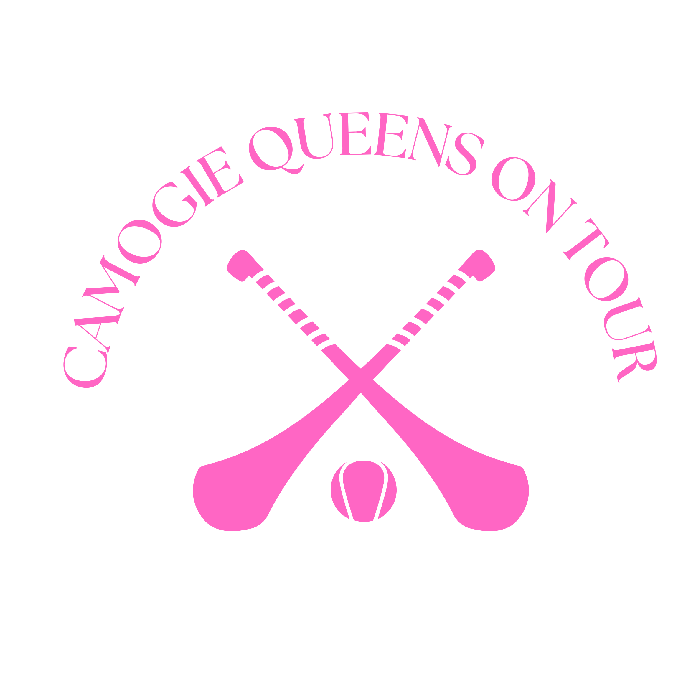 “Camogie Queen On Tour” Bride T-Shirt – White Cotton Ladies Fit with Pink Graphics